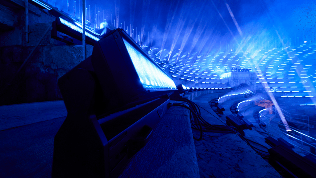 Blearred suchte nach Mitteln, die sowohl gestalterisch als auch praktisch funktionieren. Die kreativen Ideen verlangten nach einer Lichtarchitektur, die den Raum inszeniert, nicht nur die Bühne. Nach Licht, das Tiefe schafft und Rhythmus gibt. Und nach Lösungen, die robust genug sind, um den anspruchsvollen Bedingungen einer monumentalen Open-Air-Location standzuhalten, ohne dass der Schutz des historischen Mauerwerks die Produktion unnötig einschränkt.
