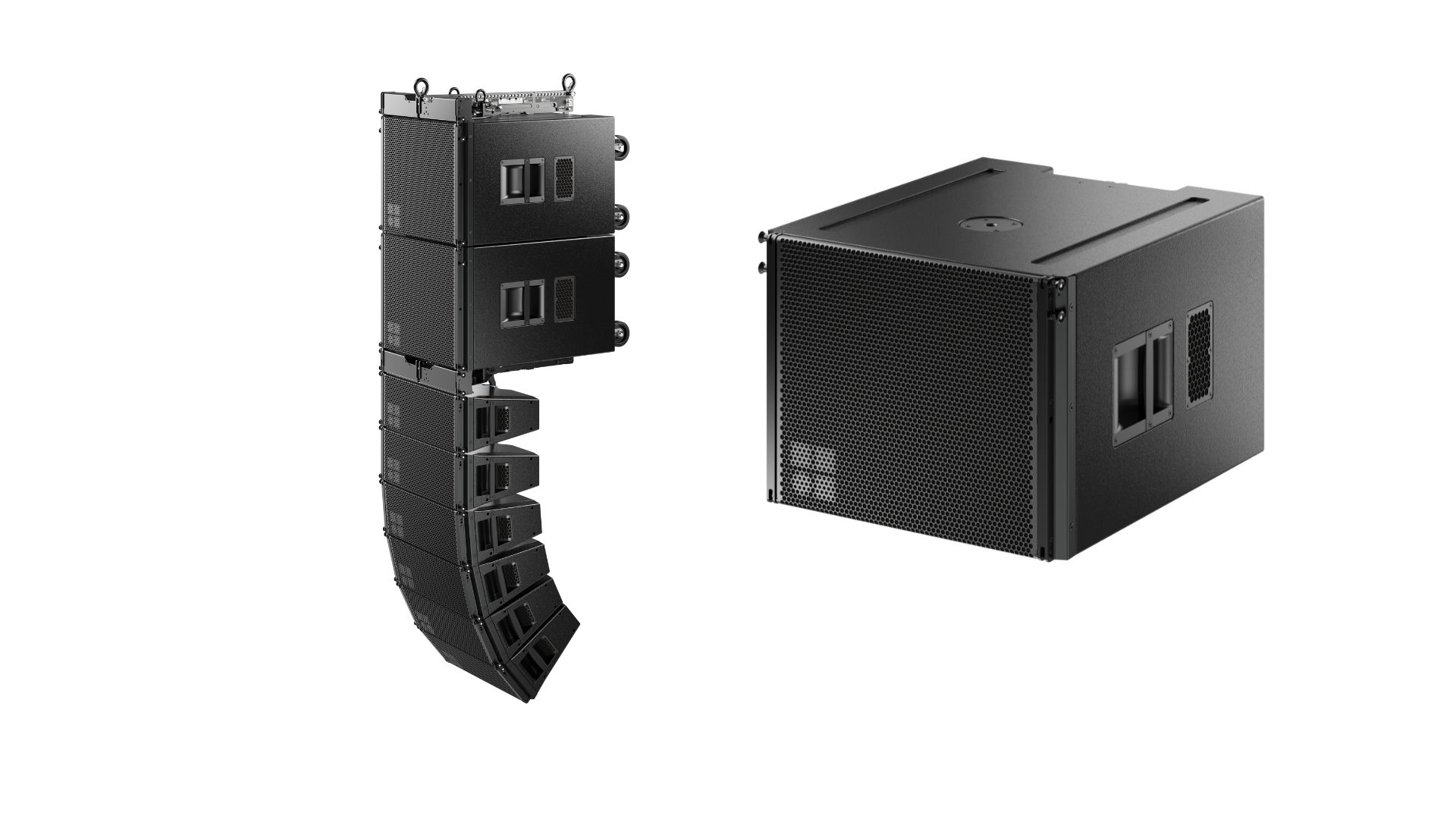 Das Herzstück des Systems bildet ein völlig neues Design mit zwei vorderen 7“-Treibern, zwei seitlichen 5“-Treibern sowie zwei 1,75“-Hochtontreibern. Dieser einzigartige Ansatz verbindet exzellente breitbandige Direktivität und kardioides Abstrahlverhalten im Tieftonbereich mit außergewöhnlichem Headroom im Hochtonbereich und minimalen Verzerrungen. Etwas, das von keinem anderen Produkt auf dem Markt erreicht wird.