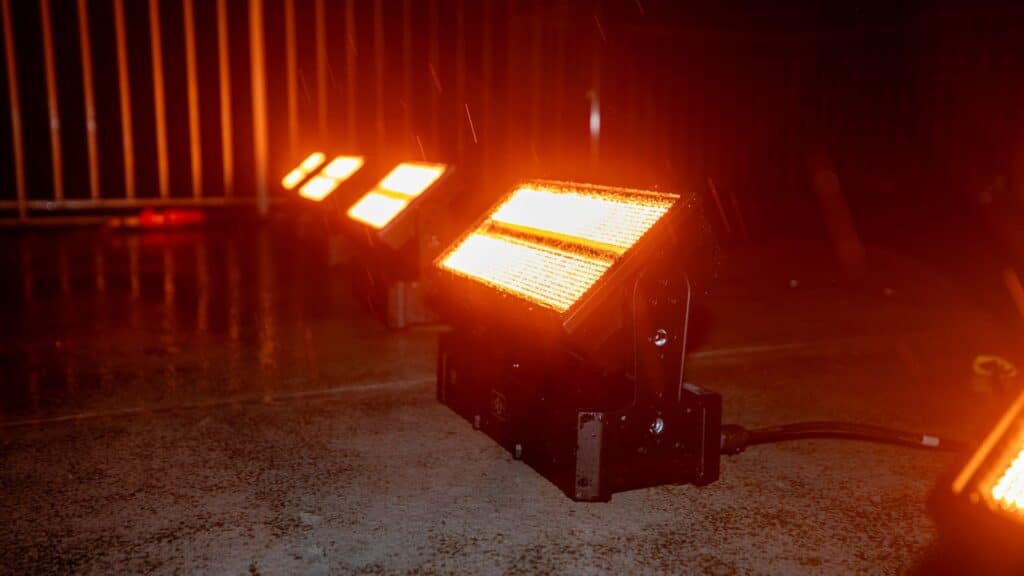 „Zwar haben wir die JDC Burst 1 ursprünglich nicht für klassische Architekturbeleuchtungen angeschafft“, erklärt Nikolai Stefansky von hell begeistert. „Dank ihres IP-Schutzes und der großen Abstrahlwinkel eignen sie sich jedoch hervorragend auch für solche flächigen Außenanwendungen.“ Gerade bei diesem Projekt habe sich erneut gezeigt, wie vielseitig die Hybrid-Strobes einsetzbar seien – von temporären Architekturbeleuchtungen bis hin zu dynamischen Showanwendungen.