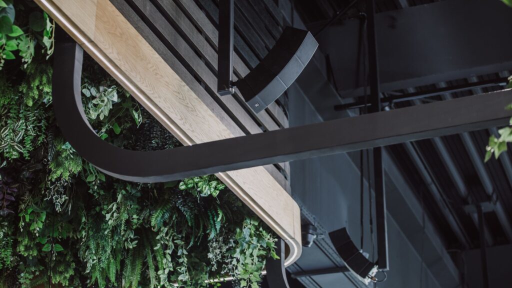 Insgesamt verteilte das Team 16 Arrays mit jeweils drei S2 Array-Satelliten im Gastraum des Restaurants, ergänzt um zwei einzelne S2 in den Waschräumen. Für den gewünschten Tieftondruck sorgen 16 CURV 500 I SUB 10″ Bassreflex-Subwoofer, die dank ihres schlanken Profils formschön in 2er-Gruppen an den Seitenwänden montiert werden konnten. Angetrieben wird das komplette Lautsprechersetup über mehrere CURV 500 I AMP 4-Kanal Class-D Installations-Endstufen.