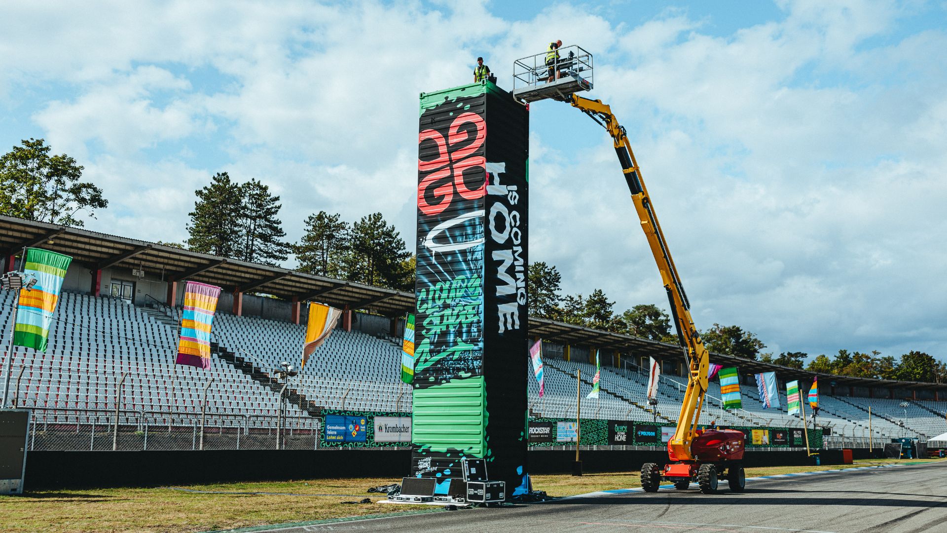 Ein besonders anspruchsvolles Projekt war der Bau einer vertikalen Containerinstallation: Vier 40-Fuß-Container wurden senkrecht aufgestellt, um das Gelände visuell zu erweitern und zusätzliche Akzente zu setzen. Da Standardcontainer nicht für diese Art der Nutzung vorgesehen sind, war eine umfassende statische Prüfung notwendig. Stageventure sorge die Berechnung der Statik, plante Schweißverbindungen und Ballastierung im Detail – inklusive TÜV-Abnahme. Das Ergebnis: ein markanter Eyecatcher auf dem Festivalgelände, der technische Präzision mit gestalterischem Anspruch vereinte.