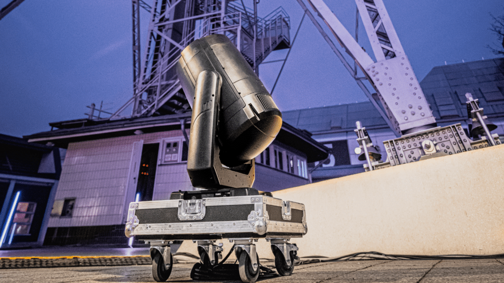 Für die Beleuchtung der inneren Struktur wurden in ca. 50 m Höhe leistungsstarke Scheinwerfer benötigt. Die Wahl fiel hier auf Robe iEsprite LTL, aufgrund der Kombination aus enormer Lichtleistung und dem beeindruckenden Zoombereich von 3 – 57° sowie dem Long-Throw Modus von 0,7 – 2°, sowie einer für diese Leistungsklasse herausragenden Kompaktheit. Die iBolts kamen nach der Bemusterung auf Kundenwunsch zum Einsatz. Hier griff TSE auf Geräte zurück, die im Dry Hire verfügbar sind.